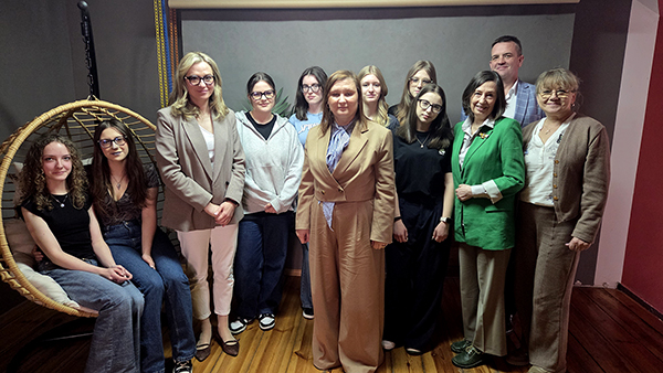 13.04.2026 r. w naszej szkole odbyło się spotkanie w ramach Projektu Peer Support. Swoją obecnością zaszczycili nas: Wiceministra Edukacji Paulina Piechna – Więckiewicz, Warmińsko – Mazurski Kurator Oświaty Jolanta Weronika Skrzypczyńska, Wicestarosta Kętrzyński Łukasz Wiśniewski. Szkołę reprezentowali: Pani Dyrektor Oliwia Piotrowicz, szkolni koordynatorzy projektu - Pani Ewa Jorka - Wysokowicz i Pan Robert Puczel oraz najliczniejsza grupa - schoolworkerki, czyli uczennice zaangażowane w projekt. Podczas rozmów poruszono kluczowe kwestie związane ze zdrowiem psychicznym uczniów i ich dobrostanem oraz największymi wyzwaniami i zagrożeniami nastolatków we współczesnym świecie.
