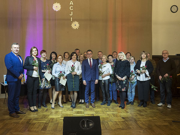Kameralnie i w niezbyt oficjalnej atmosferze odbył się w dniu nauczycielskiego święta koncert, który przygotowali utalentowani uczniowie naszej szkoły. Swą obecnością uroczystość zaszczycili pan Starosta Michał Kochanowski oraz pan Wicestarosta Andrzej Lewandowski. W dowód uznania za wkład i zaangażowanie w rozwój szkoły, za podejmowanie wielu inicjatyw na rzecz poprawy jakości jej pracy Starosta Kętrzyński wręczył nagrodę pani dyrektor Oliwii Piotrowicz. Również z rąk Starosty nagrodę za osiągnięcia w pracy dydaktyczno – artystycznej otrzymał pan Jarosław Olejnik. Tradycyjnie wręczone zostały również nagrody dyrektora szkoły.. Tradycyjnie wręczone zostały również nagrody dyrektora. Otrzymali je nauczyciele, którzy w swej pracy wykazali się profesjonalizmem, szczególnym zaangażowaniem, pasją oraz osiągnięciami dydaktycznymi: p. Joanna Hryniewicka-Bućko, p. Elżbieta Niedźwiecka-Dżus, p. Anna Wachnik, p. Urszula Wankiewicz, p. Bożena Wójcik – Wasilewska, p. Joanna Chotyniec, p. Ewa Tabaka, p. Monika Żołędziowska, p. Monika Darmofał-Karanowska, p. Robert Puczel, p. Jarosław Gresik, p. Andrzej Lewandowski. W imieniu rodziców życzenia nauczycielom złożyła Przewodnicząca Rady Rodziców pani Ewa Poniatowska.