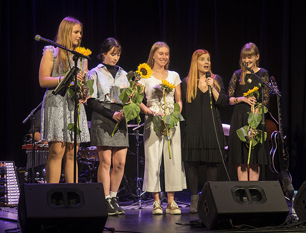 Podczas koncertu wysłuchaliśmy również piosenek z repertuaru pani Osińskiej, śpiewanych przez nasze koleżanki: Paulinę Prokop, Karolinę Żyźniewską, Aleksandrę Jeznach i Karolinę Zagrobę, które uraczyły nas fenomenalnymi wykonami utworów, choć wcale niełatwych do opracowania, to bajecznie przyjemnych do wysłuchania. Trud i wysiłek, które włożyły w ich przygotowanie, nie poszły na marne – publiczność, jak i sama pani Dorota, była pełna zachwytu. Brawo Wy, dziewczyny!
