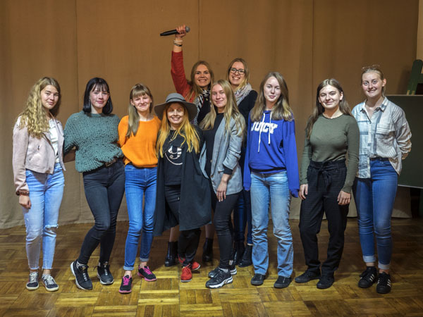 18 września odbyły się warsztaty wokalne z Panią Dorotą Osińską. To już nasze drugie spotkanie, tym razem kończące się wspólnym koncertem. Zajęcia minęły nam w przemiłej atmosferze. Utwory ćwiczyłyśmy indywidualnie. Dostałyśmy cenne wskazówki i poznałyśmy ciekawe ćwiczenia, które na pewno przydadzą się nam w przyszłości. Równocześnie trwały drugie warsztaty z Panią Justyną, które pomogły nam nabrać więcej pewności siebie i zrozumieć jak możemy poradzić sobie ze stresem.