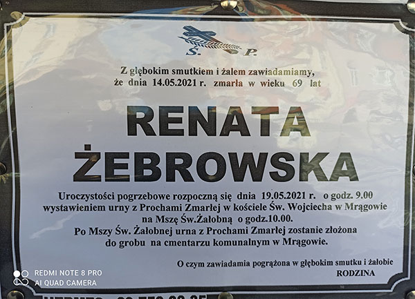 Z żalem informujemy o śmierci naszej koleżanki, Pani Renaty Żebrowskiej