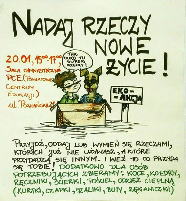 Jeśli czegoś już nie potrzebujesz, a nadaje się do użytku - podziel się z innymi. Przyjdź i poszukaj też czegoś dla siebie. Szkoda wyrzucać. Można oddać, można wziąć, można wymienić. Ale bez transakcji pieniężnych.