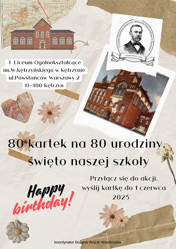aby uczcić urodziny naszej szkoły, chcemy zebrać 80 kartek urodzinowych z życzeniami dla całej Społeczności Szkolnej.