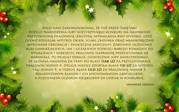 Konkurs odbędzie się 3 stycznia o godzinie 15.00 w Auli naszej szkoły.