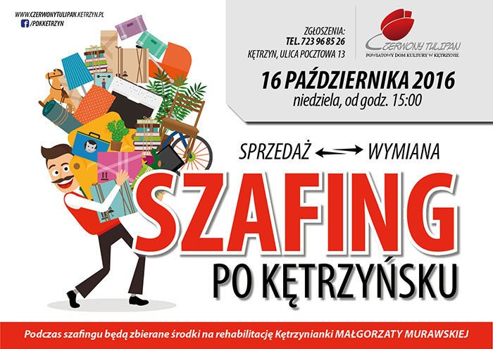 Zbliża się 16 października, a to sygnał, że Szafing po Kętrzyńsku czas zacząć. Tradycyjnie spotykamy się na placu przy Powiatowym Domu Kultury „Czerwony Tulipan” przy ul. Pocztowej 13 w godz. 15.-17. Tym razem wielbicieli tanich zakupów połączy jeden cel – obudzić przebywającą w śpiączce Małgorzatę Murawską.