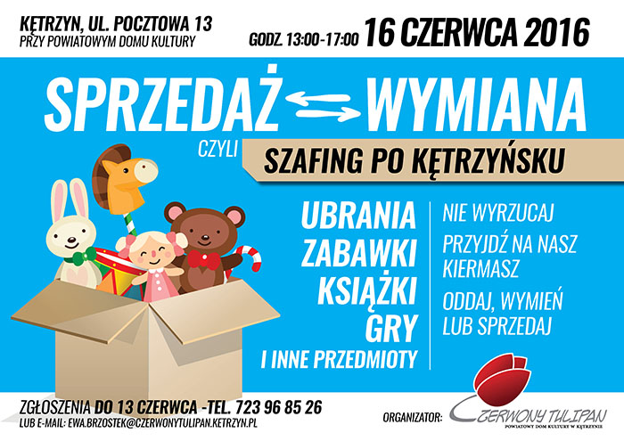 Otwierasz szafę i zastanawiasz się co z tym wszystkim zrobić? Jak to się stało, że pełno tam ubrań, których właściwie już nie nakładasz. Nie lepiej jest w pokoju dziecięcym, gdzie znajdują się zabawki, książki, gry i inne przedmioty, którymi się nie bawi, i których nie używa. Jeśli nie wiesz co z tym zrobić przynieś to wszystko na „Szafing po Kętrzyńsku”.