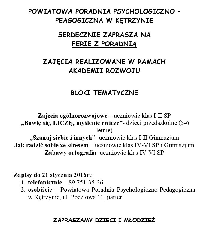 W ZWIĄZKU ZE ZBLIŻAJĄCYMI SIĘ FERIAMI ZIMOWYMI