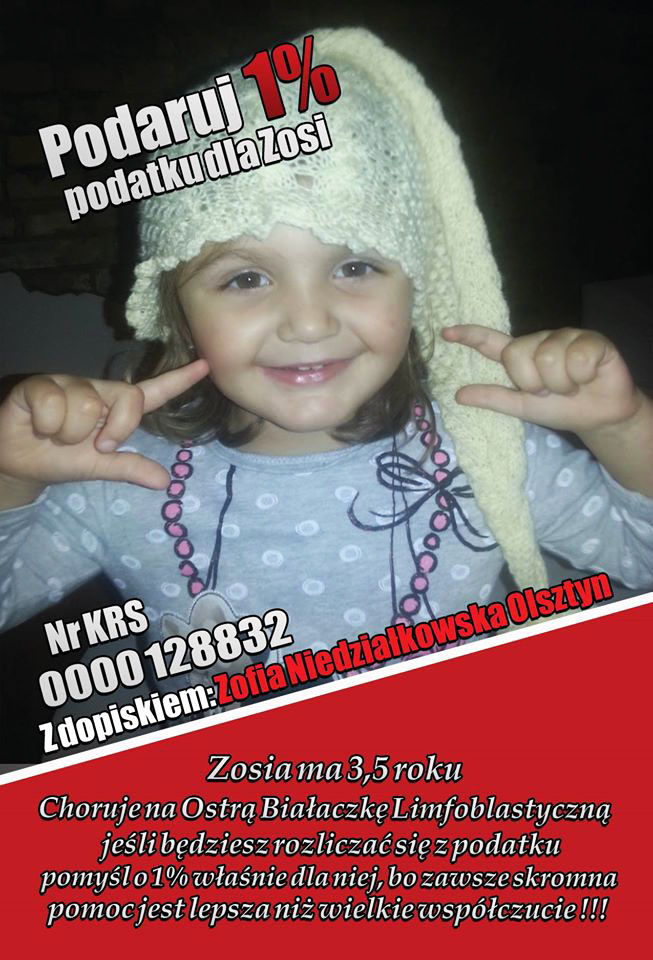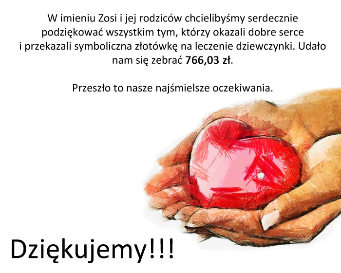 Z góry dziękujemy w imieniu Zosi i jej rodziców.