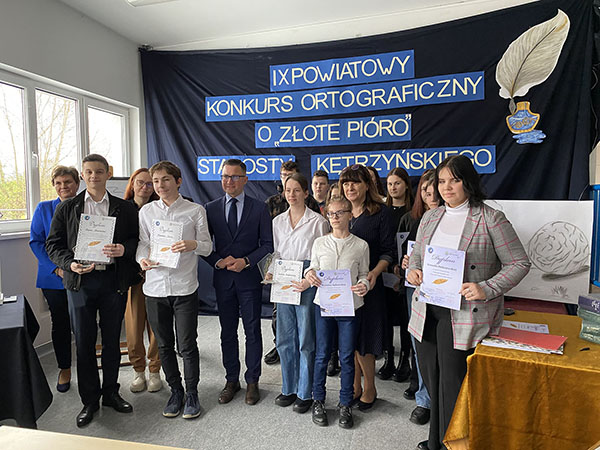 Już po raz dziewiąty w Zespole Szkół im Marii Curie Skłodowskiej odbył się Powiatowy Konkurs Ortograficzny „O złote pióro” Starosty Kętrzyńskiego. Naszą szkołę reprezentowali: Aleksandra Prusaczyk z 4bd, Paulina Pierzchanowska z 4d, Joanna Kreczman z 3d, Filip Kiewlak z 4a, Karol Skórka z 4d. Dyktando pt. ”Kuchenne łamigłówki” zawierało dużo ortograficznych smaczków ,np. potrawkę z cukinii i ciecierzycy, rzadkie muszle szczeżui. Można też było dowiedzieć się, że praprzodek pszenicy to samopsza. Z tym arcytrudnym tekstem zmierzyli się nasze uczennice i nasi uczniowie.