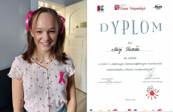 Miło nam poinformować, że Alicja Służała, uczennica klasy Ic, znalazła się w gronie wolontariuszy wyróżnionych przez Burmistrza Miasta Kętrzyn podczas finału XXVII Lokalnego Samorządowego Konkursu Nastolatków „Ośmiu Wspaniałych”. Nasza koleżanka reprezentowała również powiat kętrzyński podczas finału ogólnopolskiego tego Konkursu.