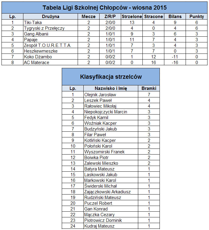 Tiki – Taka chyba za bardzo uwierzyła w swoje siły po ostatniej wygranej nad Papajami. W tym meczu zawodnicy Tiki – Taki za dużo kombinowali, za dużo się kiwali i udziwniali grę. Kibice dość długo czekali na pierwszą bramkę. Okazjo oczywiście nie brakowało, ale sama gra zostawiała wiele do życzenia. Również rezerwowi Tiki – Taki biegali po boisku jak wolne elektrony i nie trzymali swoich pozycji. Zawodnicy Heszkewmeszke, mimo że grali bez dwóch podstawowych graczy dzielnie walczyli w obronie i próbowali kontrować, co udokumentowali honorową bramką w końcówce meczu. Mamy nadzieję, że w następnych spotkaniach Tiki – Taka zagra na swoim normalnym poziomie. Za trzy bramki do szóstki kolejki trafia Mikołaj Rałowiec. Jest to nominacja trochę na kredyt, bo oprócz 3 bramek Mikołaj za dużo kombinował i przetrzymywał piłkę, czym zwalniał grę swojej drużyny i wybijał swoich zawodników z rytmu. Mikołaj – popraw się!
