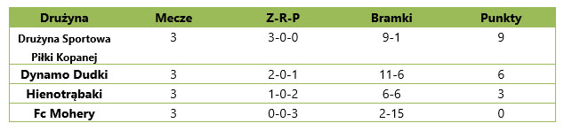 Poniżej tabela wyników spotkań: