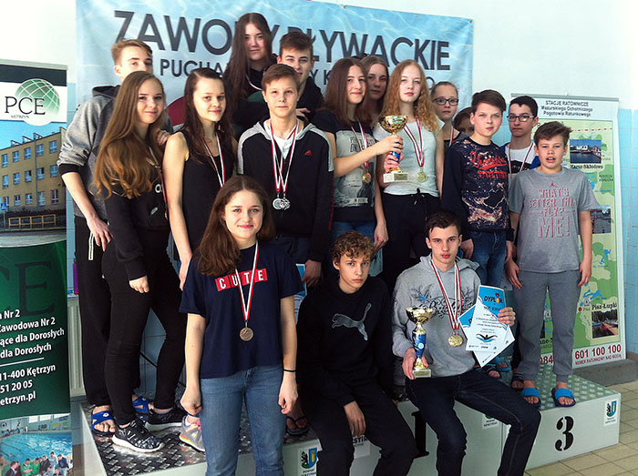 W rozegranych 27 marca XIV powiatowych zawodach pływackich szkół gimnazjalnych o Puchar Starosty Kętrzyńskiego doskonale zaprezentowali się nasi reprezentanci. Na rozegranych 14 konkurencji zdobyli 16 medali w tym: 6 złotych, 4 srebrne, 6 brązowych. Medale zdobyli: