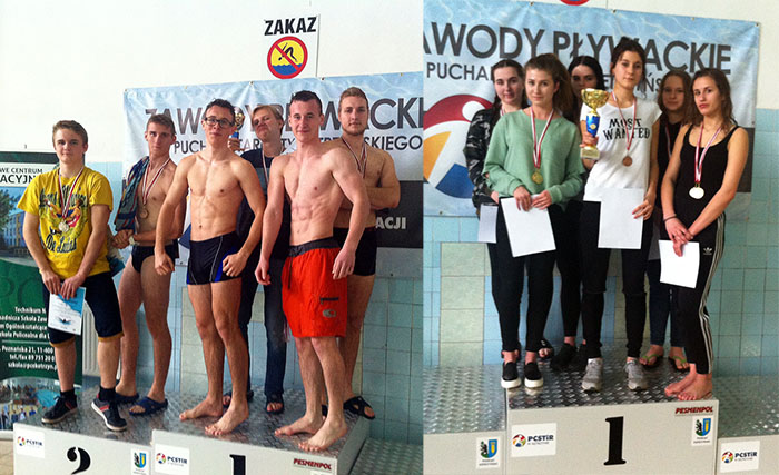 Błaszczak Gabriela 2b - 1 miejsce w sztafecie 4x50 m, Piskorz Karolina 2b – 1 m.w sztafecie 4x50 m, 1 m. na dyst. 25 m stylem motylkowym, Wanago Agata 2b – 3 m. na dyst25 m stylem grzbietowym, Szymańska Magdalena 2a – 2m. na dyst. 25 m stylem motylkowym, 2 m. na dyst. 50 m stylem klasycznym, Kamińska Urszula 1ab – 1m na dyst. 50 m stylem dowolnym, 1 m w sztafecie, Pierzchanowska Julia 1cd – 2 m na dyst. 25 m stylem grzbietowym, Syhłowyj Bartosz 2a – 2 m. na dyst. 50 m stylem dowolnym, 3miejsce w sztafecie 4x50 m, Szawkowski Michał 2a – 3 m na dyst. 50 m stylem dowolnym, 3 miejsce w sztafecie, Makowski Jakub 1ab – 1 m na dyst. 100 m stylem dowolnym, 3 miejsce w sztafecie, Połoński Karol 1ab – 3 m w sztafecie, Ziemczonek Jakub 1ab – 2 m na dyst. 50 m stylem motylkowym, 1 m na dyst. 100 m stylem zmiennym, Majorowski Karol 1cd – 2 m na dyst. 100 m stylem dowolnym, 2 m na dyst. 100 m stylem klasycznym.