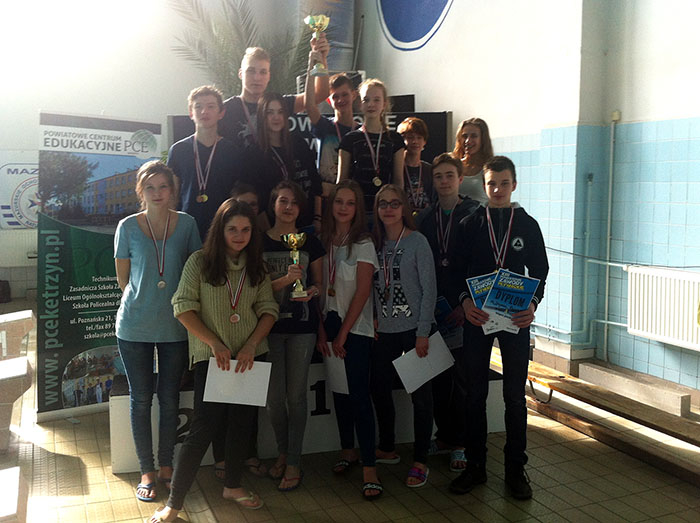 W rozegranych w poniedziałek 7 marca XIII Powiatowych Zawodach Pływackich o Puchar Starosty Kętrzyńskiego w kategorii szkół gimnazjalnych, doskonale spisały się drużyny naszych dziewcząt i chłopców. Obydwie reprezentacje odniosły zdecydowane zwycięstwa w klasyfikacjach drużynowych. Na rozegranych 14 wyścigów wygrali w 7, 6 razy zajmowali drugie miejsca i 6 razy plasowali się na 3 miejscu. Wszyscy nasi zawodnicy kończyli swoje konkurencje zdobywając punkty dla drużyny.