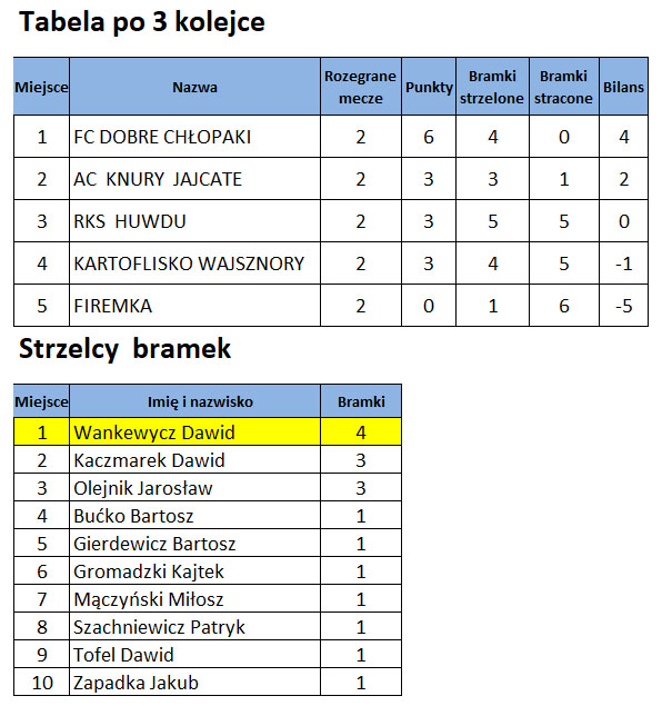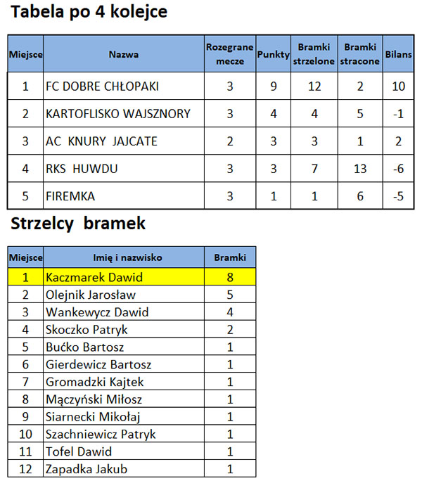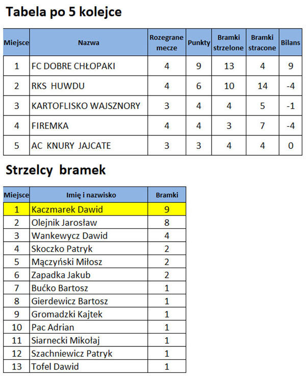 Piąta kolejka turnieju rozegrana zostanie 23 marca 2023 r (CZWARTEK). Początek meczów o godz 16.15