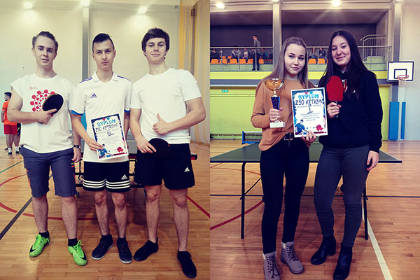 Dnia 26.11.2018 r w hali sportowej Powiatowego Centrum Sportu Turystyki i Rekreacji w Kętrzynie odbył się Finał Powiatowy Szkolnego Związku Sportowego w Tenisie Stołowym dziewcząt i chłopców Szkół Ponadgimnazjalnych. Po zaciętej i stojącej na wysokim poziomie grze dziewczęta z naszej szkoły Dominika Syhłowyj i Maria Szmyglewska z klasy 1D1 zdobyły 1 miejsce, a chłopcy w składzie Jonatan Dłuski, Jakub Piliszko z klasy 2C i Gracjan Oleszkiewicz z klasy 1BE uplasowali się na 3 miejscu. Dominika i Maria uzyskały awans do rozgrywek rejonowych (1/4 finału wojewódzkiego), który odbędzie się już jutro 27.11.2018 w Lidzbarku Warmińskim.