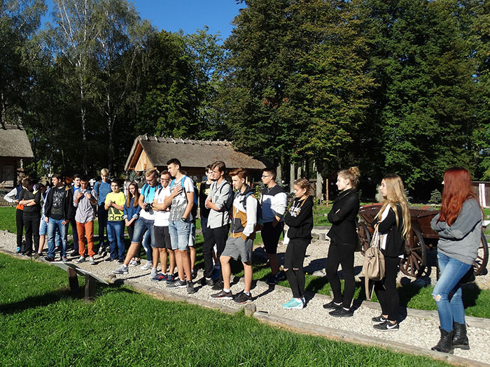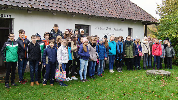 W środę 19 października 2016 klasy pierwsze gimnazjum wraz z wychowawcami odwiedziły Muzeum Mazurskie w Owczarni. Wszystko zapowiadało się wspaniale: plan, masa atrakcji, ciekawe opowieści, ognisko. I większość planu zrealizowaliśmy, a chociaż pogoda nie dopisała, bawiliśmy się wybornie. Po pierwsze: odwiedziny Muzeum Mazurskiego, które powstało z prywatnej inicjatywy pana Aleksandra Puszko w 1996 roku. Teraz wiemy już o wiele więcej o naszym regionie, jego mieszkańcach i historii. Bo czy wszyscy wiedzą, że… „o Mazurach, jako o ludności mieszkającej w południowej części byłych Prus Wschodnich, zaczęto mówić po 1815 roku, chociaż żadne szczególne przemiany w terenie i ludności nie zaszły. O Mazurach, jako o ludności w części północno-wschodniej Polski przestało się mówić po 1945 roku wraz z ewakuacją i przesiedleniami powojennymi. Po Mazurach została tylko nazwa regionu. To, co ludność mazurska pozostawiła przez ten czas w krajobrazie kulturowym naszego regionu stało się przyczyną powstania tego muzeum”. Dziś Mazury są bardzo atrakcyjne turystycznie, jako zespół wielkich jezior od Mamr po Śniardwy, jako Wilczy Szaniec, Święta Lipka, czy miasta Giżycko i Mikołajki. Znamy i poznajemy jeziora, lasy, miasta i wsie, ale nie znamy życia codziennego, problemów, jakimi zajmowali się ci ludzie, czym żyli i z czego żartowali.