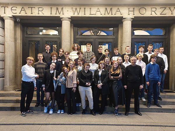 Zameldowaliśmy się w hotelu i korzystając z czasu wolnego poszliśmy na wspólny spacer. Byliśmy pod wrażeniem, jak dokładnie opis panoramy Warszawy, który Bolesław Prus opisał w "Lalce", odpowiadał temu, co zobaczyliśmy na własne oczy. Punktem kulminacyjnym naszej wycieczki była wizyta w Teatrze Dramatycznym. Obejrzeliśmy spektakl pt. "Miłość od ostatniego wejrzenia". Bardzo zafascynowała nas gra aktorek i emocje, jakie towarzyszyły im podczas występu. Po wizycie w teatrze wróciliśmy do hotelu. Wieczór spędziliśmy na integracji. Czas upłynął nam na długich rozmowach oraz grach planszowych i doszliśmy do wniosku, że po tak długim czasie nauczania zdalnego było nam to potrzebne.