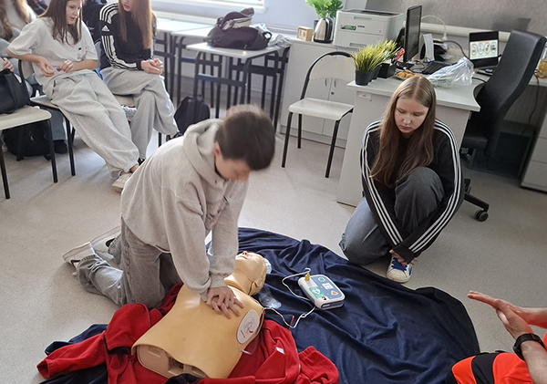 16 marca 2026 roku uczestniczyliśmy w szkoleniu z zakresu pomocy przedmedycznej. Zajęcia poprowadził pan Tomasz Warchoł-pielęgniarz i ratownik medyczny, który na co dzień pracuje w Szpitalu Powiatowym w Kętrzynie. Na zajęciach zapoznaliśmy się z podstawowymi zasadami pierwszej pomocy w nagłych sytuacjach (np. zadławienie, oparzenie lub krwotok z nosa). Poza tym nauczyliśmy się, jak prawidłowo przeprowadzić resuscytację krążeniowo-oddechową, wykorzystując defibrylator AED.