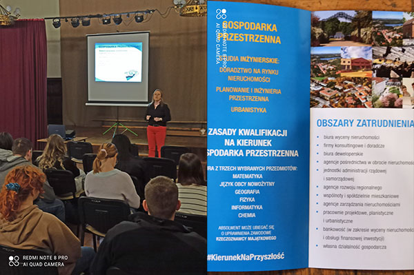 Kontynuując spotkania naszych maturzystów z przedstawicielami szkół wyższych w ostatni piątek gościliśmy reprezentantki Wydziału Geoinżyniernii Uniwersytetu Warmińsko-Mazurskiego w Olsztynie. Panie z Instytutu Gospodarki Przestrzennej i Geografii przedstawiły zasady rekrutacji i warunki studiowania na kierunku Gospodarki Przestrzennej. Pokazały uczniom klas trzecich na czym polega specyfika studiowania na tym kierunku, jakie są specjalizacje, jakie są możliwości uzyskania zatrudnienia/samozatrudnienia po tych studiach. Panie omówiły bazę wykładową kierunku, programy i projekty, jakie mogą realizować studenci, zwróciły też uwagę na przydatność zawodów, jakie absolwenci Gospodarki Przestrzennej mogą wykonywać np. rzeczoznawca nieruchomości. Może warto pomyśleć o tym kierunku w kontekście wyboru przyszłych studiów.