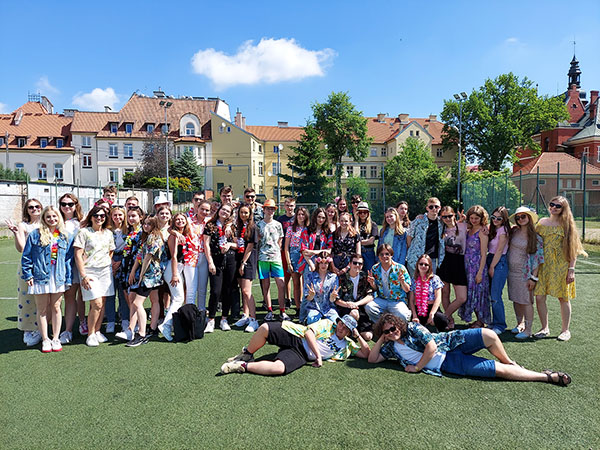10 czerwca korytarze naszej szkoły wyglądały nieco inaczej. Kolorowe stroje uczniów rozświetliły mury „Starego Ogólniaka”, a w powietrzu można było wyczuć letnią aurę. To zjawisko było związane z wydarzeniem skrywającym się pod nazwą Dnia Hawajskiego. Aby przygotować się na nadchodzące lato uczniowie byli ubrani niczym plażowicze żywcem wyciągnięci z pacyficznego archipelagu. W ubiorze uczennic oraz uczniów wyróżniały się kwieciste motywy, ekstrawaganckie koszule hawajskie bądź fikuśne okulary przeciwsłoneczne. Ten niespotykany w naszej szkole powiew lata przyniósł uśmiech na twarzach zarówno młodzieży, jak i nauczycieli. Wydarzenie zostało upamiętnione grupową fotografią.