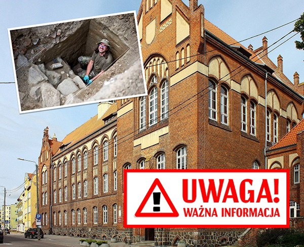 Obecnie trwają prace remontowe w pokoju nauczycielskim. Nasi konserwatorzy znaleźli pod podłogą fragmenty starej, niemieckiej gazety. Prawdopodobnie zostały one celowo włożone pod deski podłogi, jako dowód zakończenia prac wykończeniowych przed oddaniem budynku szkoły do użytku.