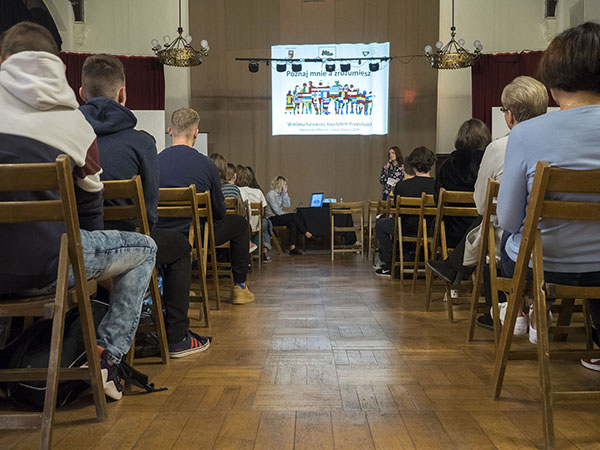 W środę, 23 października, naszą szkolę odwiedzili doradcy zawodowi z Powiatowego Urzędu Pracy w Kętrzynie. Na spotkaniu z uczniami klas drugich przedstawili aspekt wielokulturowości w środowisku pracowników. Panie z Urzędu Pracy omówiły szanse i możliwości tkwiące w różnorodnym środowisku pracowniczym, wskazały również korzyści wynikające ze współpracy w międzynarodowym zespole. Poruszony został również temat zalet i wad pracowników wynikających z łączenia w zespołach zadaniowych ludzi z różnych państw oraz w różnym wieku.