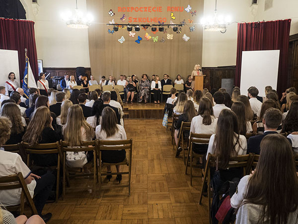 Z nowym sztandarem, nową (starą) nazwą szkoły i nowymi uczniami – absolwentami szkoły podstawowej i gimnazjum weszliśmy w nowy rok szkolny 2019/2020. W uroczystości wzięła udział Naczelnik Wydziału Oświaty pani Danuta Tomczak. Dyrektor szkoły, pani dr Oliwia Piotrowicz, serdecznie powitała wszystkich uczniów, rodziców i kadrę pedagogiczną, życząc wszystkim owocnej pracy.