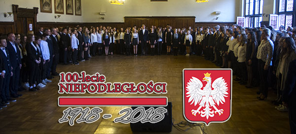 Naród, który nie szanuje swej przeszłości nie zasługuje na szacunek teraźniejszości i nie ma prawa do przyszłości –to słowa wypowiedziane prawie 100 lat temu przez Józefa Piłsudskiego. Ten szacunek wyraża się w kultywowaniu pamięci dotyczącej przeszłości własnego państwa i narodu. Pamięci, między innymi, o tamtych listopadowych dniach sprzed stu lat, gdy znowu „wybuchła Polska”. Uczniowie naszej szkoły uczcili zatem setną rocznicę odzyskania niepodległości w sposób szczególny. Każda klasa przyozdobiła swoją pracownię lekcyjną, na korytarzach pojawiły się biało-czerwone flagi, a na oknach od strony ulicy wielkie biało-czerwone barwy. Dodatkowo samorząd szkolny zorganizował kiermasz babeczek przybranych w narodowe kolory. Kulminacyjnym momentem ostatniego dnia w szkole przed Dniem Niepodległości było wspólne odśpiewanie przez uczniów i nauczycieli hymnu w auli. I tak z ponad czterystu gardeł o godzinie 11.11 poleciały w świat słowa, że jeszcze Polska nie zginęła, kiedy my żyjemy…