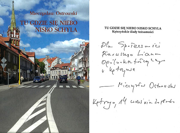 Pan Mieczysław Ostrowski ukończył naszą szkołę w 1966 roku, osiedlił się w Zielonej Górze, gdzie był między innymi wykładowcą na wyższej uczelni. Chociaż opuścił Kętrzyn, pozostał on na trwałe w jego pamięci. Szczególnie ciepło w swojej książce wspomina lata szkolne, spędzone również w naszym ogólniaku. Dziś, gdy jest na emeryturze, z wielkim sentymentem powraca do miejsca swojego dzieciństwa i młodości. Zawsze pamięta o swojej szkole i przyjaciołach ze szkolnych ław. Przekazuje nam wszystkim serdeczne podziękowania i pozdrowienia.