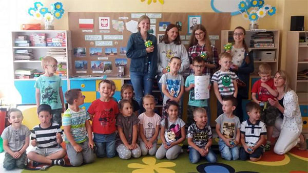 A dziewczęta...zadowolone z efektów swojej pracy i zachęcone przez nauczycielkę planują napisanie kolejnych bajek i kolejną wizytę w przedszkolu.