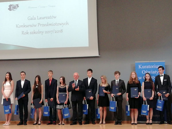 W tym roku po raz kolejny odbyła się Gala Laureatów Konkursów Przedmiotowych, na którą zostali zaproszeni uczniowie posiadający przynajmniej 2 tytuły laureata, nauczyciele oraz dyrektorzy wybitnych szkół. Z naszej szkoły zaproszeni zostali: Wiktor Szukis (laureat z historii, WOS-u i geografii, finalista z chemii i języka polskiego), Bartosz Kisły (laureat z geografii i chemii), pani Urszula Wankiewicz, której uczniowie uzyskali 4 tytuły laureata i 4 tytuły finalisty, oraz pani dyrektor Oliwia Piotrowicz.