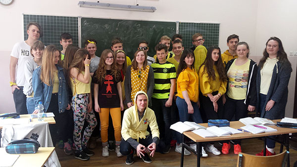 W dniach 9-13 IV odbył się w naszej szkole "Tydzień Kolorów". Każdego dnia uczniowie przychodzili ubrani w odpowiednie kolory wraz z różnorodnymi dodatkami. W poniedziałek wyznaczonym kolorem był czerwony, a dodatkiem były szeroko pojęte krawaty, muszki, kokardy oraz szaliki. We wtorek szkoła rozjaśniała bielą razem z domalowanymi wąsami i piegami. W słoneczną środę dominował kolor żółty i zabawne skarpetki. W czwartek głównym kolorem był niebieski, który towarzyszył kreatywnym kapeluszom. W piątek królował nowy kolor wprowadzony w tym roku przez Samorząd Uczniowski - kolor czarny. Idealnie komponował się on z piątkowym dodatkiem - dresami. Po obliczeniu wyników miejsca na podium zajęły następujące klasy: