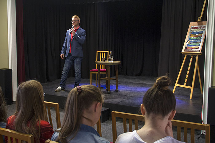 Dnia 13. 05. 2016 klasy IA gimnazjum i IA liceum wzięły udział w spotkaniu autorskim z Panem Krzysztofem Piersą – dziennikarzem i autorem książki „Komputerowy Ćpun”. Odbyło się ono w Miejskiej Bibliotece Publicznej. Pan Krzysztof opowiadał nam o nałogu, jakim jest granie w gry komputerowe. Przedstawił go z perspektywy własnych doświadczeń, przez długą część swojego życia był uzależniony od komputera i doskonale wie, jak trudno poradzić sobie z tym problemem. Spotkanie przebiegło w luźnej atmosferze, pomimo początkowej niechęci uczniowie zadawali liczne pytania. Dzięki spotkaniu wielu z nas zrozumiało, że gry komputerowe mogą stać się poważnym nałogiem oraz że problemu zbyt długiego i zbyt częstego grania nie można bagatelizować.