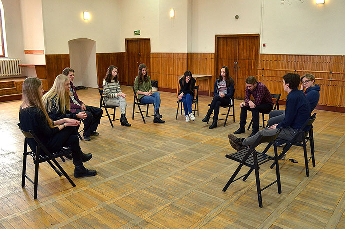 W dniach 27-29 stycznia, uczniowie naszej szkoły brali udział w warsztatach aktorskich, prowadzonych przez pana Dariana Wiesnera. Spotkania odbywały się w zamku, gdzie szkoliliśmy swoje umiejętności i dowiadywaliśmy się ciekawych rzeczy o pracy w teatrze. Uświadomiliśmy sobie, jak ważna w pracy aktora jest dykcja oraz wyobraźnia. Mieliśmy okazję lepiej poznać siebie nawzajem. Spotkaliśmy również nowych ludzi, którzy pomogli nam przełamać lody i otworzyć się na nowe znajomości. Myślę, że wspaniale spędziliśmy czas w swoim gronie. Dodatkowo czytaliśmy scenariusz i ćwiczyliśmy do nowego przedstawienie, które już w kwietniu zagości na deskach naszej szkolnej sceny.