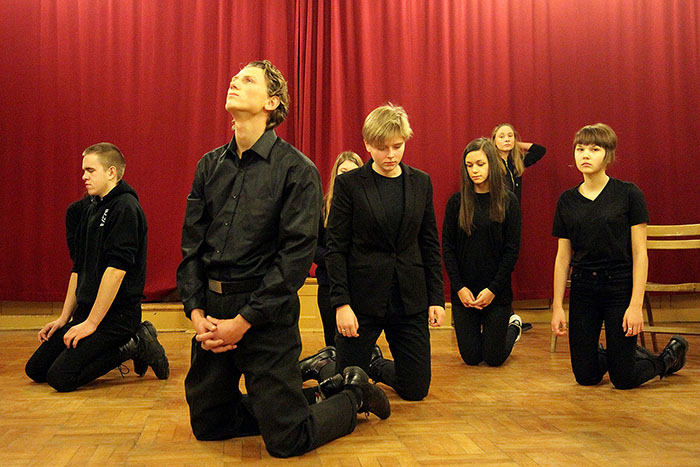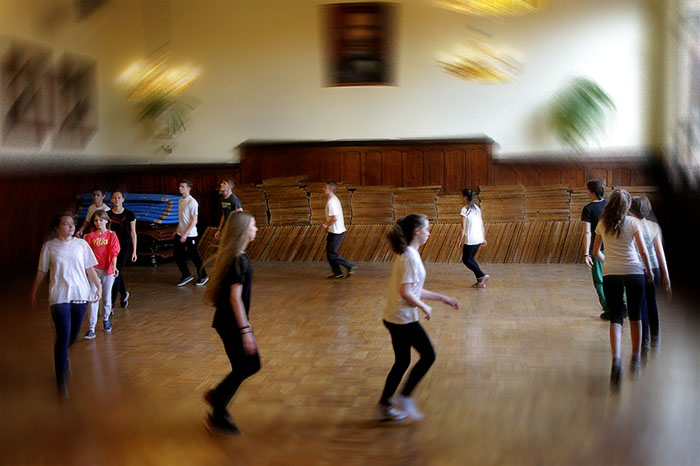 Dnia 14 grudnia grupa uczniów, przygotowujących szkolne przedstawienie, uczestniczyła w zajęciach z p. Darianem Wiesnerem. Kierowani wskazówkami i poleceniami gościa uczestnicy rozwijali swoje możliwości głosowe i poznawali podstawowe tajniki aktorstwa przy pomocy "transbiegu". Mimo, że po 40 minutach ciągłego biegu, łączonego z ćwiczeniami głosowymi, byli nieco zmęczeni, każdy przyznał, że było to bardzo ciekawe i przyjemne doświadczenie, dzięki któremu zyskali nowe możliwości i umiejętności.