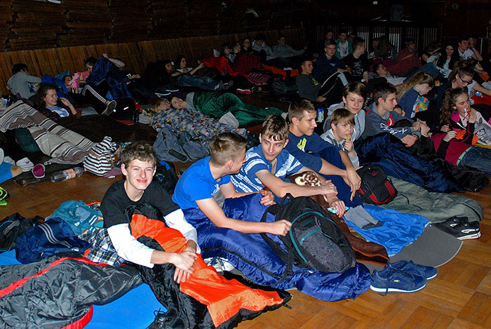 W nocy z 4/5 grudnia 2015r. odbyła się w naszej szkole III Noc Filmowa organizowana przez klasę I cd. Noc rozpoczęła się o godzinie 19.00, kiedy uczniowie wygodnie rozsiedli się na materacach, aby zobaczyć "Szybkich i wściekłych" - pierwszy z wyświetlanych filmów. Potem obejrzeliśmy jeszcze m.in."Amadeusza", "Papierowe Miasta" czy "Królestwo Niebieskie". Równolegle do trwania seansów odbywała się zabawa w podchody, w trakcie której zgłoszone grupy mierzyły się ze stawianymi przed nimi zadaniami i zagadkami podążając ścieżkami rzymskiego legionisty lub średniowiecznego rycerza. Całą noc dostępna była również kawiarenka zaopatrująca widzów w ciepłe napoje, tosty czy popcorn. Noc minęła szybko, a czas który tam spędziliśmy był miłym przerywnikiem od szkolnych obowiązków.