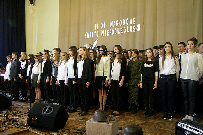 Dla każdego Polaka dzień 11 listopada jest bardzo ważny. To Narodowe Święto Niepodległości. 97 lat temu po 123 latach niewoli Polska stała się samodzielnym państwem. Złączone ziemie zaborów pruskiego, rosyjskiego i austriackiego na powrót zrosły się w jedność. Marzenia Polaków o niepodległości po latach walki z germanizacją i rusyfikacją nareszcie się ziściły. Z tej okazji w naszej szkole dnia 12 listopada 2015 r. miała miejsce akademia, która rozpoczęła się wspólnym zaśpiewaniem "Mazurka Dąbrowskiego" oraz wysłuchaniem "Hejnału Wojska Polskiego". Po tym nastąpiła część poetycko - muzyczna, w której znalazły się takie pieśni jak "Rota", "Rozkwitają pąki białych róż", "Wojenko, wojenko" oraz wiersze m.in. H. Zbierzchowskiego, K. Przerwy - Tetmajera. Spektakl został przygotowany pod kierunkiem pani Beaty Donasewicz i pani Haliny Zapolskiej przez uczniów klasy I B LO. Wystąpili również koledzy i koleżanki z innych klas oraz zespół "Decybel", prowadzony przez pana Tomasza Kolendę. Uczniowie, zarówno klas gimnazjalnych, jak i liceum, nagrodzili występujące osoby gromkimi brawami.