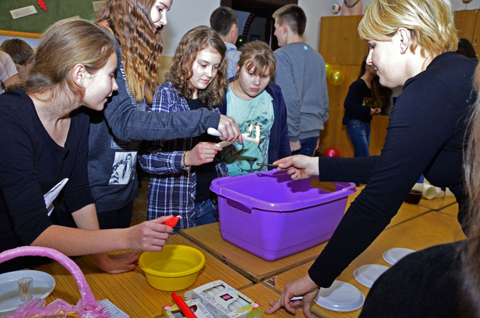 Noc Andrzejkowa jest nocą niezwykłą. Jak co roku, próbujemy trochę dla zabawy, a trochę serio poznać naszą przyszłość :). Wróżby to stary zwyczaj, w którym od wieków młode panny zbierały się, aby dowiedzieć się jaka będzie ich przyszłość. Panowie, ciekawi co ich spotka zbierali się kilka dni wcześniej – w wigilię św. Katarzyny. Andrzejki pozwalają oderwać się od rzeczywistości i wkroczyć w świat magii, marzeń, fantazji …oraz cudownej zabawy….!!! Właśnie taki nastrój przeżyliśmy na dyskotece Andrzejkowej zorganizowanej w piątek w ZSO w Kętrzynie dnia 28.11. 2014r. przez pana Sylwestra Gaciocha z Samorządem Uczniowskim oraz panią Agnieszkę Jastrzębską i jej klasę wychowawczą I C gimnazjum. Klasa podzieliła swoje role. Pompowali balony, przyklejali serpentyny oraz lampki. Jednym słowem bardzo się starali, żeby było kolorowo i aby każdy mógł poczuć magiczny klimat. Przygotowali również wróżby: kto chciał podchodził do stolika „wróżek”, a tam z kości, z wosku, z wykałaczek każdy mógł poznać przyszłość. Z wyciętych serduszek poznaliśmy imię ukochanej osoby i było jeszcze wiele innych wróżb. Przez cały czas trwała wspaniała dyskoteka. Młodzież bawiła się przednio, po prostu szalona, huczna, skoczna zabawa. Każdy tańczył, skakał, jednym słowem szalał jak umiał do ostatniej minuty, aż żal było się rozstać. Pozdrawiamy wszystkich uczestników, dziękujemy za pomoc i przyjazną atmosferę. Dziękujemy nauczycielom, którzy byli obecni na dyskotece. Do zobaczenia za rok!!!
