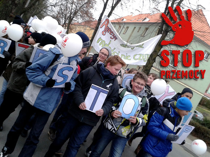 W Kętrzynie 28 listopada odbył się marsz przeciw przemocy pod hasłem „Kochaj, szanuj, nie krzywdź, nie bij…” w ramach Kampanii „Biała Wstążka”. W marszu uczestniczyli przedstawiciele stowarzyszeń, szkół, urzędów oraz osoby prywatne. Naszą szkołę reprezentowali uczniowie klasy I b Gimnazjum i pani pedagog Halina Ulińska. Uczestnicy nieśli transparenty z wypisanymi hasłami przeciw przemocy, w rękach trzymali białe balony, chłopcy mieli przypięte białe kokardki - symbol sprzeciwu przemocy wobec kobiet. Pochód przeszedł ulicami miasta w kierunku kina "Gwiazda", gdzie podsumowano kampanię społeczną przeciwko przemocy. Mogliśmy też obejrzeć przedstawienie „W piaskownicy”.