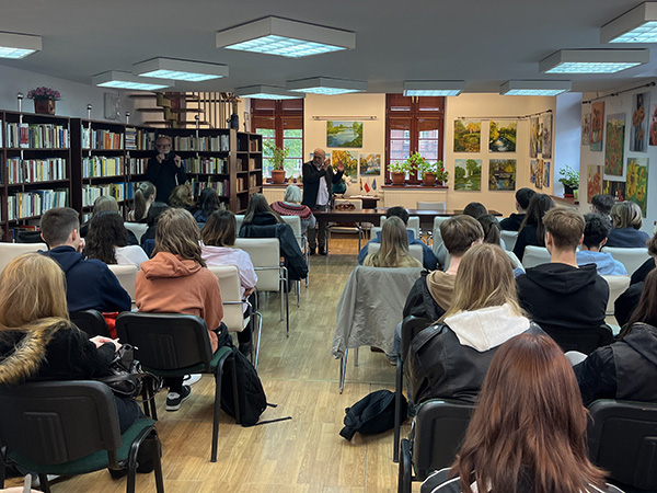 16 maja w siedzibie Stowarzyszenia im. Arno Holza dla Porozumienia Polsko- Niemieckiego w Kętrzynie odbyło się spotkanie kl. 3 c i kl. 2 bc z panem Krzysztofem Szatrawskim, poetą, tłumaczem, profesorem Wydziału Sztuki na Uniwersytecie Warmińsko - Mazurskim w Olsztynie oraz honorowym obywatelem miasta Kętrzyn. Ten niezwykły człowiek jest ponadto absolwentem naszej szkoły, którą wspominał z sentymentem, mówiąc, że był to jeden z najlepszych okresów w jego życiu. Uczestnicy spotkania mieli okazję nie tylko poznać utwory poetyckie profesora Szatrawskiego, ale również jego opinię na temat muzyki. Dowiedzieli się ponadto o działalności Olsztyńskiego Oddziału Stowarzyszenia Pisarzy Polskich, do którego mogą zgłosić swoją twórczość, licząc na wsparcie artysty. Ogromna pasja i wiedza, którą dzielił się pan profesor, dostarczyły wielu pozytywnych wrażeń i z pewnością na długo pozostaną w sercach młodych osób. Wyjątkową pamiątką ze spotkanie będą tomiki poezji profesora Szatrawskiego pt. „Wszędzie" oraz „Suita w garniturze" ze szczególną dedykacją dla społeczności szkolnej I LO.