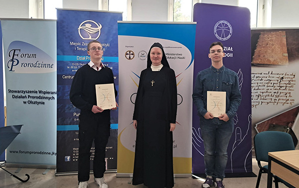10 kwietnia 2025 roku w Olsztynie odbył się etap centralny Ogólnopolskiej Olimpiady Wiedzy o Rodzinie. Do rywalizacji finałowej dostawał się tylko jeden zespół z każdego województwa. Nasze województwo reprezentowali: Artur Grądzki i Cyprian Włosik z kl. 3a2. W finale na początku uczniowie musieli rozwiązać test. Źródłem była Konstytucja i ustawy. Później 5 najlepszych drużyn brało udział w debacie. Arturowi i Cyprianowi udało się uzyskać tytuł finalisty! Wszyscy finaliści otrzymali indeksy na UWM w Olsztynie oraz nagrody rzeczowe. W przerwie uczniowie i ich opiekunowie mogli także zapoznać się ze starodrukami jakie przechowywane są w archiwum archidiecezji warmińskiej, a także poznać historię olsztyńskiego seminarium.