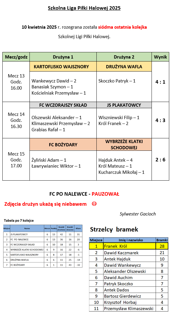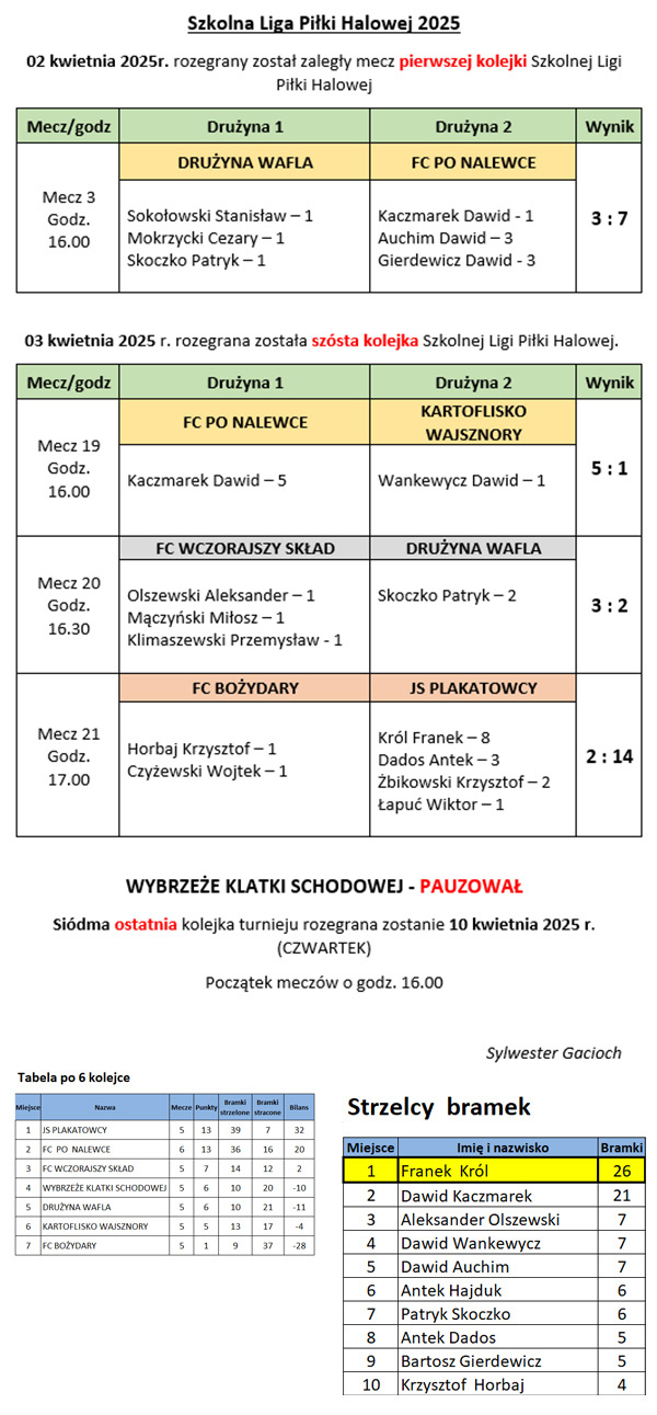 Królem Strzelców Turnieju został Franek Król z klasy 1A z 28 bramkami.