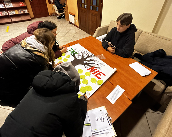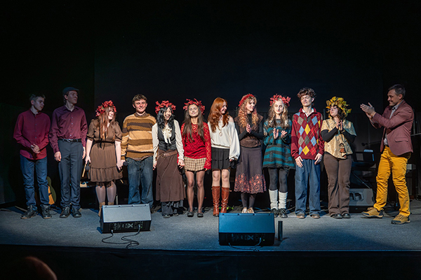 Warto również podkreślić integracyjny charakter tego wydarzenia. Na scenie spotkali się uczniowie z różnych klas – zarówno pierwszoklasiści, jak i maturzyści – którzy wspólnie tworzyli spójną, zgraną grupę. Taka współpraca międzypokoleniowa w murach szkoły jest niezwykle cenna, sprzyja budowaniu relacji, wymianie doświadczeń i pokazuje, że muzyka oraz poezja potrafią łączyć ludzi niezależnie od wieku czy etapu edukacji. Na uwagę zasługuje również dojrzałość artystyczna licealistów. Choć są młodymi wykonawcami, potrafili przekazać głębokie emocje i sens wykonywanych tekstów. W ich interpretacjach wyczuwalna była autentyczność, zaangażowanie oraz pasja do muzyki i poezji. Szczególnie poruszające były momenty, gdy delikatny śpiew łączył się z cichym akompaniamentem skrzypiec, pianina i gitar tworząc intymną atmosferę bliskości z publicznością.