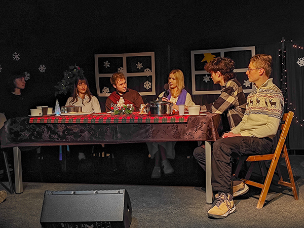 19 grudnia, w piątek klasa 4a2 i 4e zorganizowały w naszej szkole wyjątkowy spektakl świąteczny. Przeniósł nas on w atmosferę Wigilii studentów w akademiku. Przedstawienie było pełne humoru i wielu zabawnych scen, które rozbawiły publiczność. W trakcie występu śpiewano kolędy, które bardzo podobały się widzom i wprowadziły wszystkich w świąteczny nastrój. Największą furorę zrobił osioł przemawiający ludzkim głosem o północy. Występ na pewno pozostanie w naszych pamięciach.